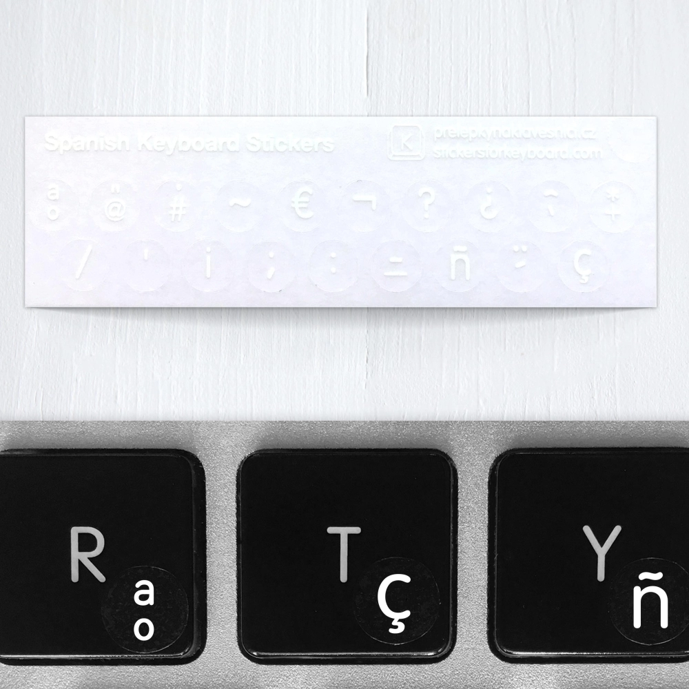 Spanish keyboard stickers are white in daylight and glowing in the night. Characters pick up any source of light coming in / through ( such as light from your own monitor, laptop, or even USB light etc, etc) and glowing in the dark.