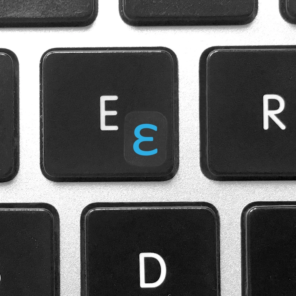 A universal set of transparent mini keyboard stickers with the Greek alphabet is perfect for typing Greek letters and special symbols, including IPA phonetic signs, such as , , , , , , , which are used for precise sound representation in linguistic texts, transcriptions, or for studying Classical (Ancient) Greek.